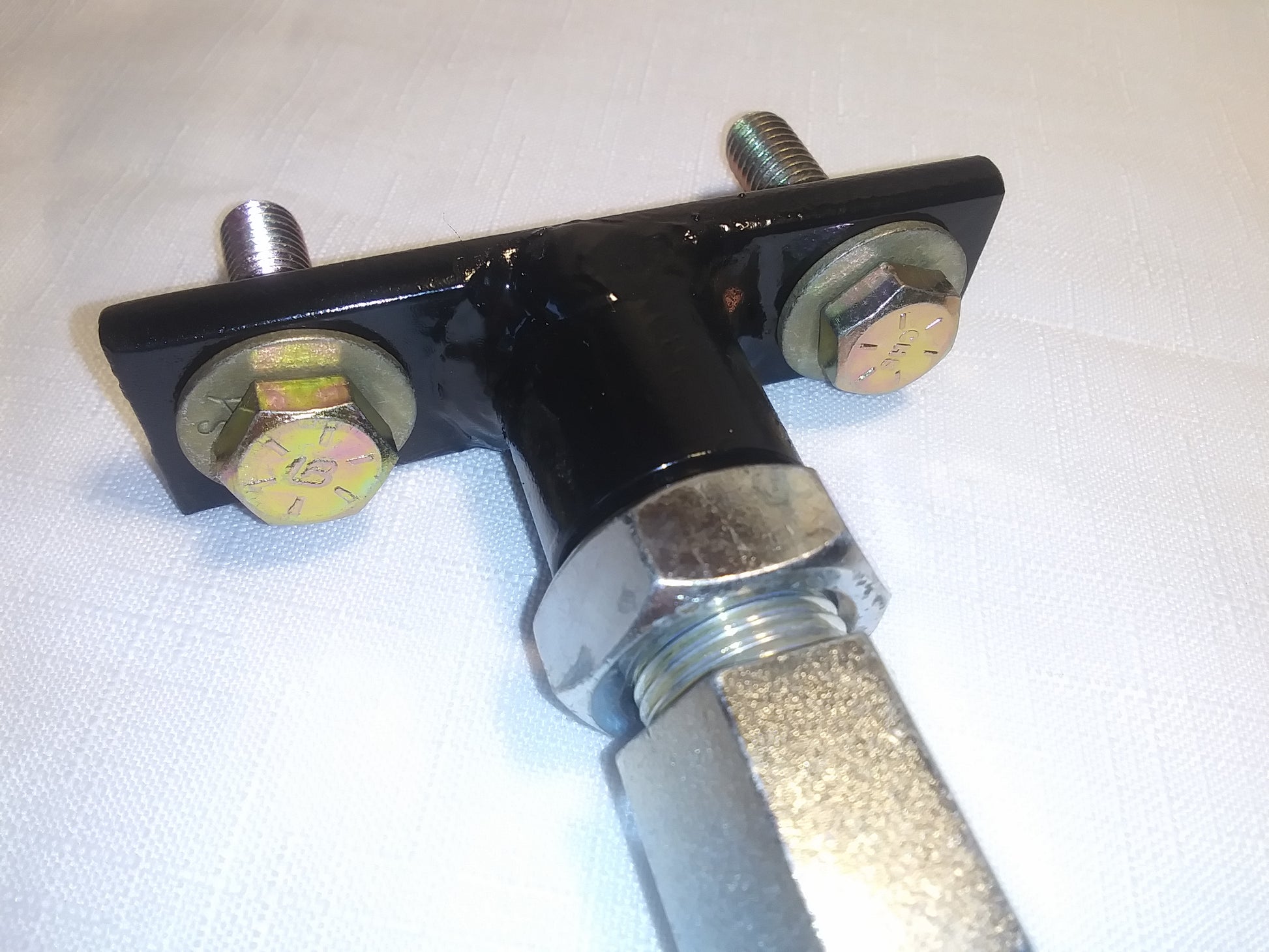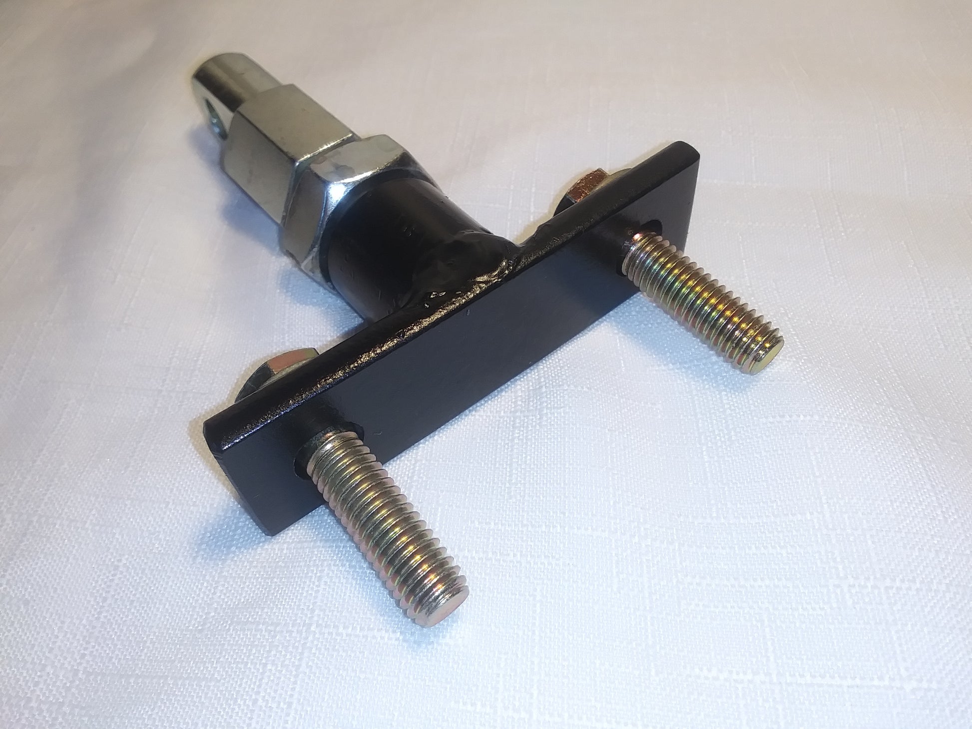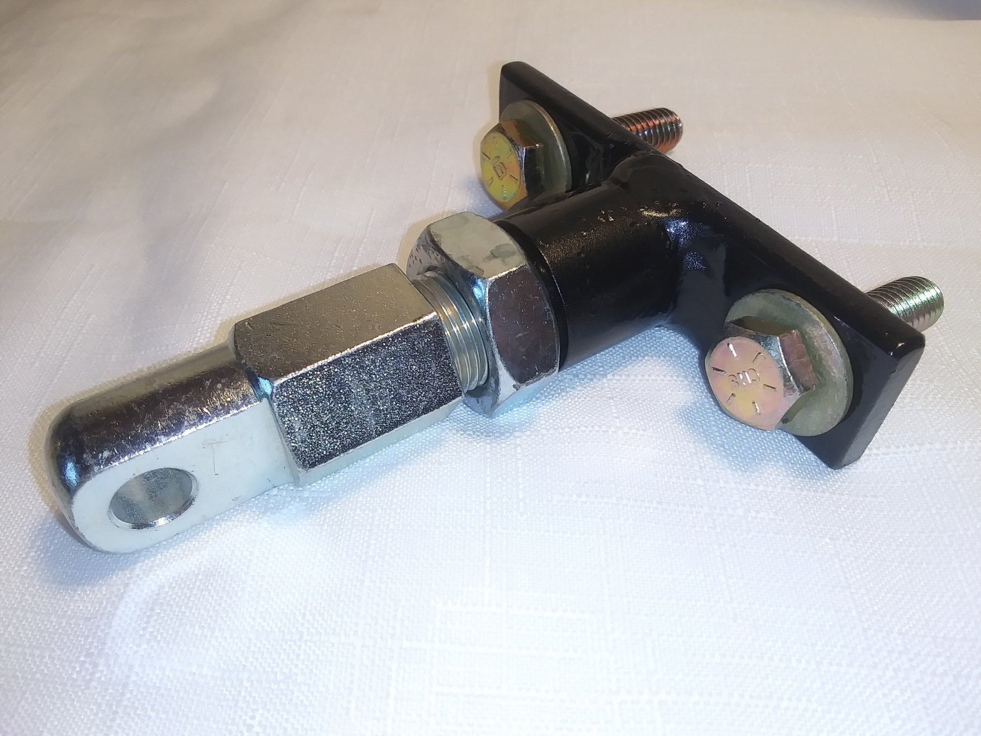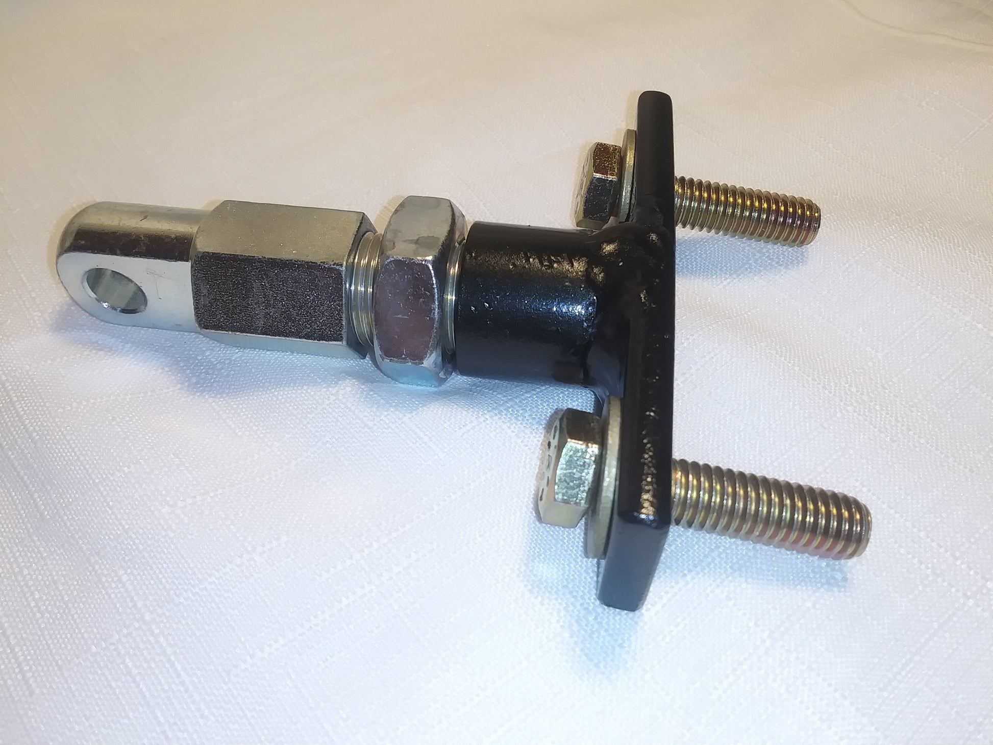 This is the upper rear I-bolt motorcycle mount to connect to a strut clevis used on California Sidecars. Fits Harley-Davidson FLST Softail models from 1984-2007. May fit later year models past 2007, check your bolt hole measurements. This bracket attaches to the two bolts used on the rear fender strut by the seat. Bolt holes are 3/8" and 2-1/2" center to center. Backing plate is 3-5/8" wide by 1" tall by 1/4" thick.
