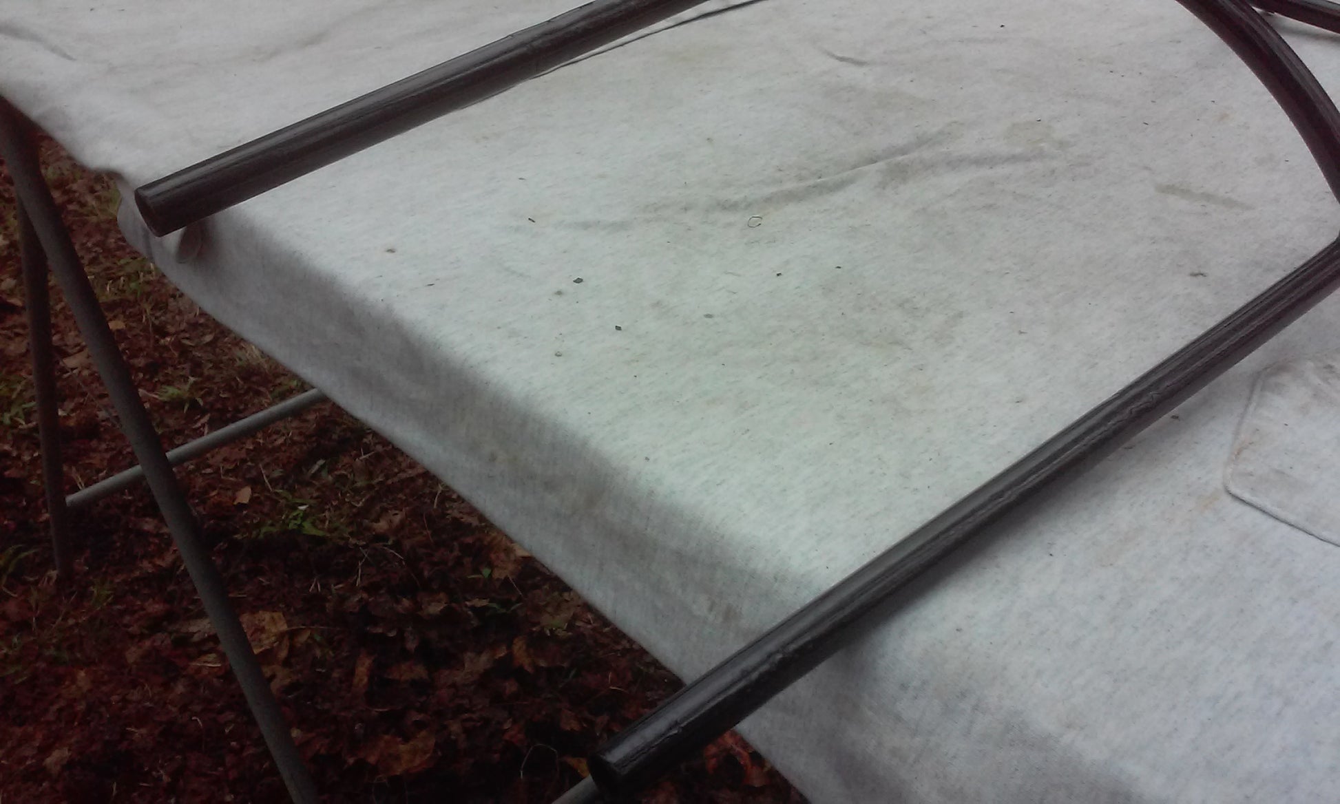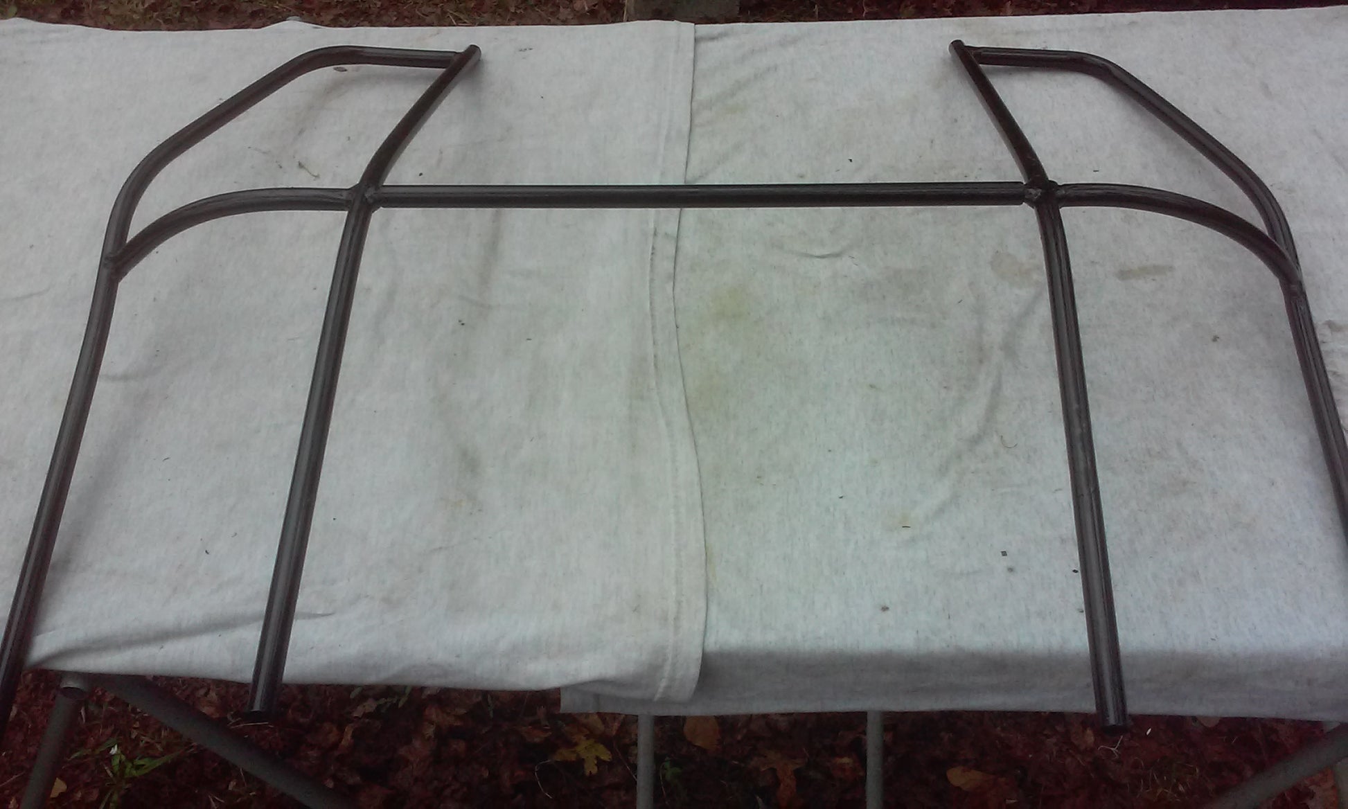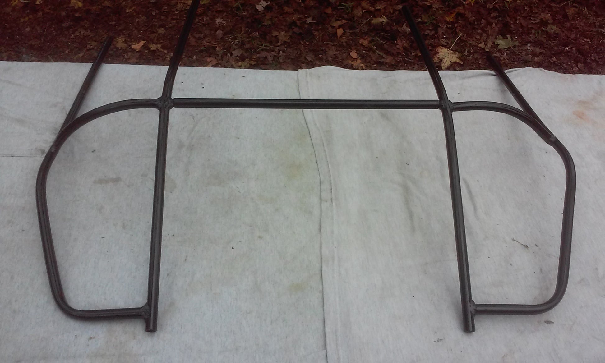 Friendship III convertible top bow for late model version. It is missing the rear curved part that connects the frame together and the two front pins that are inserted into the windshield frame. It is black powder coated. To be used as replacement spare parts.